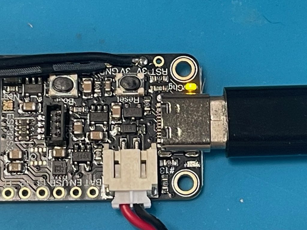 The main board supports battery charging. Connect the battery and then connect to USB C to a power bank (not a mains charger as it may provide too much power). A yellow LED will illuminate to signify the battery is charging. The light will go out once battery has charged.