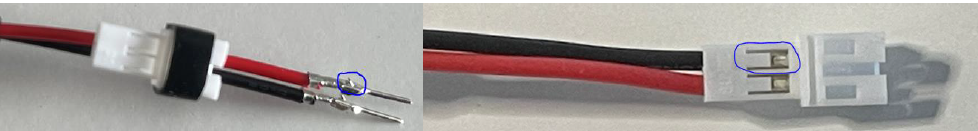 Check the orientation for + ‘Positive and – ‘Negative cables on your battery then slide the connectors into the adapter to match.